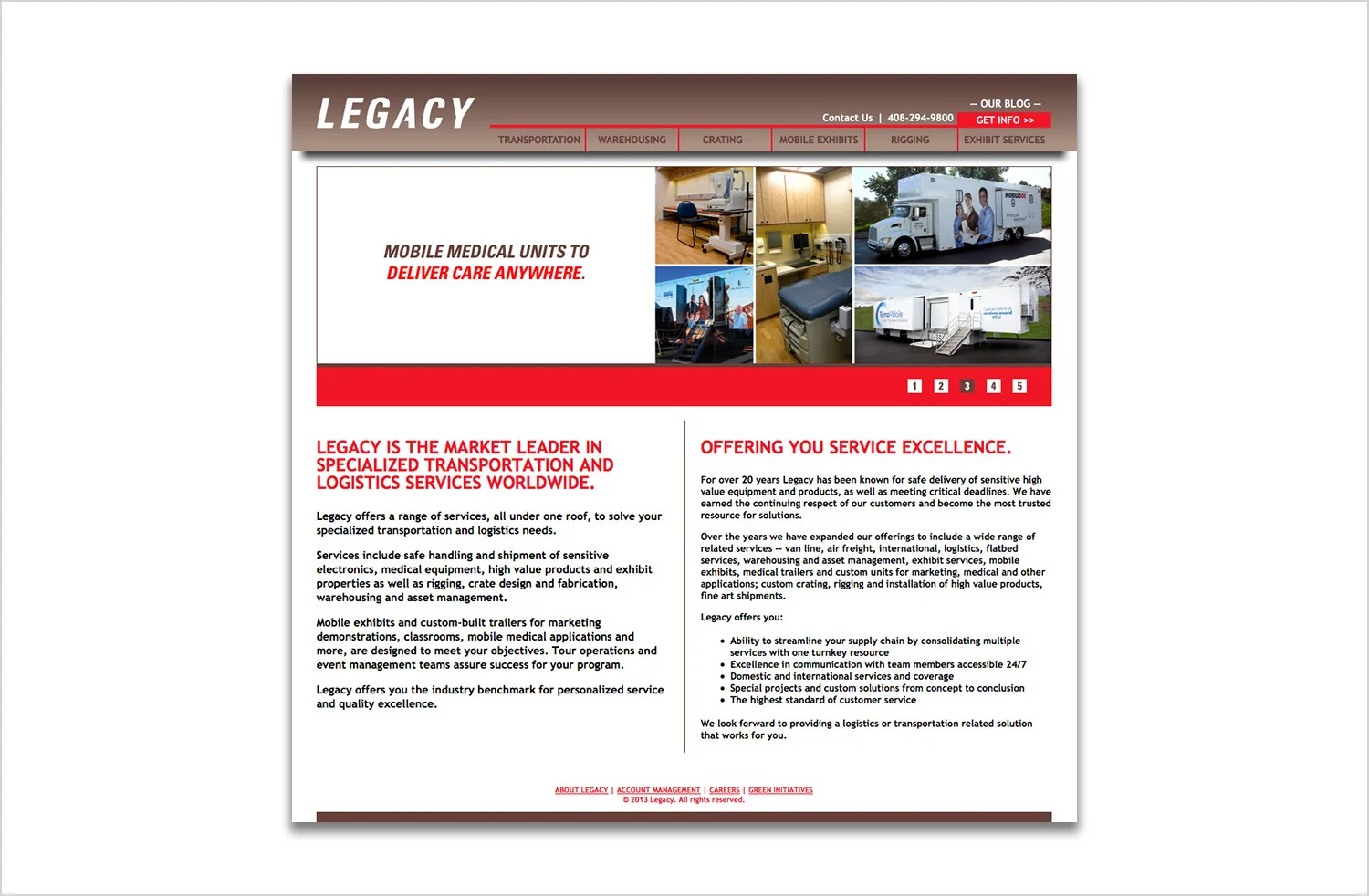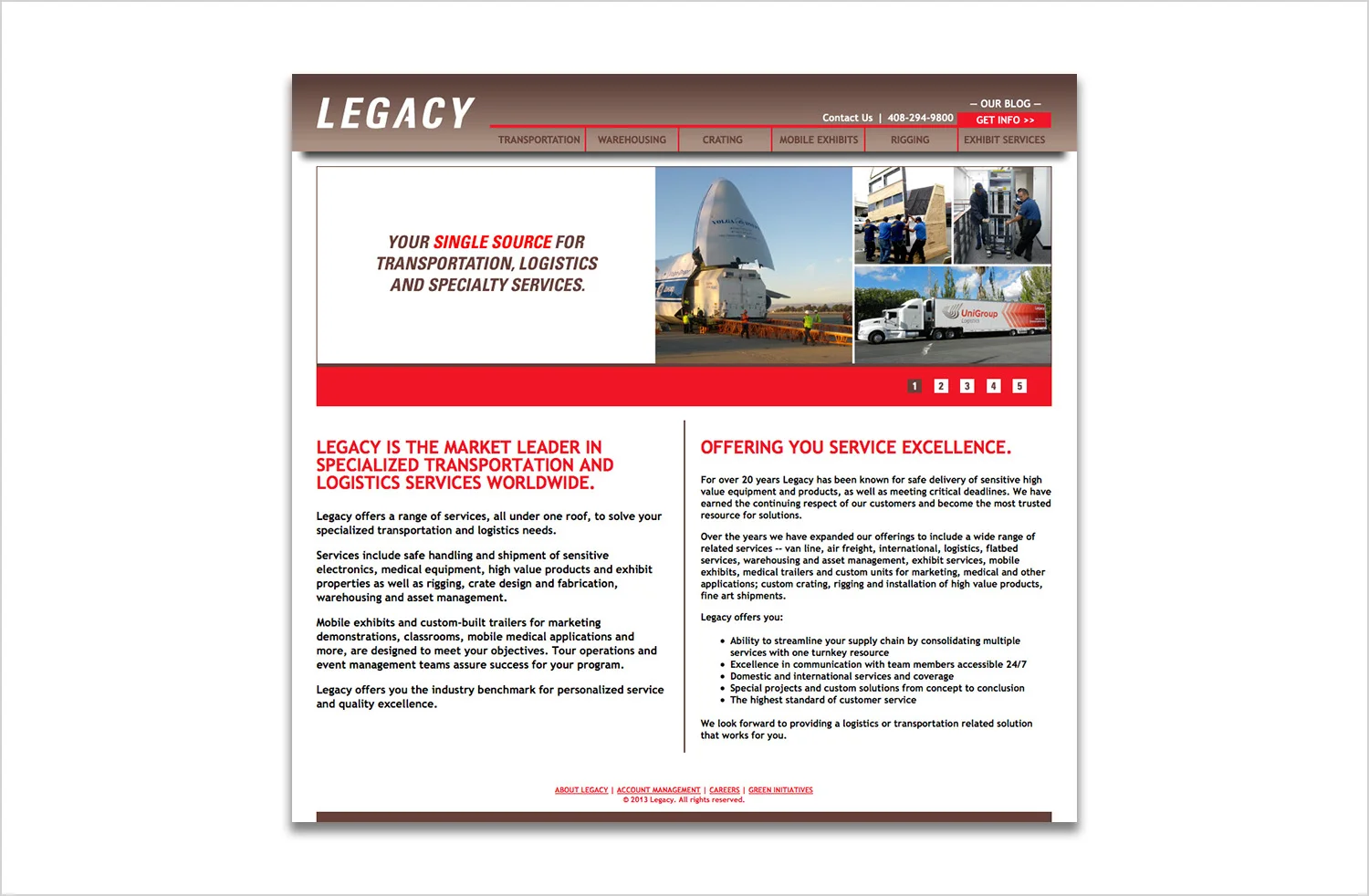 Legacy is the industry's leading provider of specialized transportation and logistics services worldwide. As an agent for Unigroup Logistics, Legacy needed to update their brand to reflect their relationship to Unigroup Logistics, yet still have their own unique personality. We developed a completely new brand for them that involved a new logo, website, marketing materials, signage, truck graphics, employee uniforms and event giveaways.